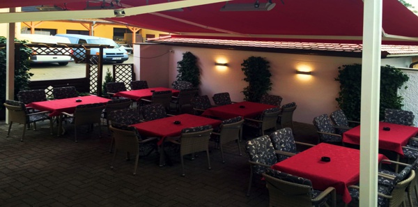 Unsere neue überdachte Terrasse für lauschige italienische Abende bei einem guten Glas Wein und hervorragender italienischer Küche.